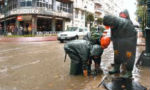 De 12 a 15 h. los bomberos acudieron a 25 lugares de la ciudad, especialmente para intervenir en inundaciones de locales en Torrecedeira, Balaídos, Montero Ríos, Coruña y Colón, en el parking de Urzáiz y por la avería de dos transformadores en esta calle y el Parque de A Bouza.