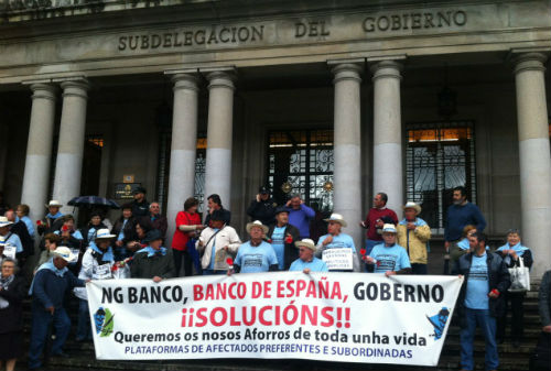 Un vecino de Pontevedra, de 82 años, que tenía ‘atrapados’ en Deuda Subordinada de Novagalicia Banco 60.000 €, se quitó la vida, este sábado, en su casa. La noticia ha sido difundida este martes por la portavoz de la Plataforma de Afectados de Marín-Pontevedra durante la protesta realizada por la misma delante de la Subdelegación del Gobierno, en la capital. El consejero delegado de NGB, César González Bueno, ha confirmado el suceso, antes de su participación en un acto en Vigo. “”Hoy es un día especialmente triste» ha indicado, añadiendo que el fallecido era un hombre amable que estaba hablando con la oficina para intentar solucionar su problema y al que teníamos aprecio. Verdaderamente es un día de gran desolación», ha subrayado.