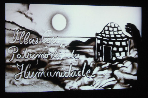 «O canto das Illas», que se repetirá este sábado y mañana, domingo, unió la música, el arte del dibujo en inmediato, con un elemento esencial de las islas, la arena, con las manos de Colette Dedyn; la poesía de Francisco Castro y las nuevas tecnologías, con imágenes ocupando las paredes del auditorio.