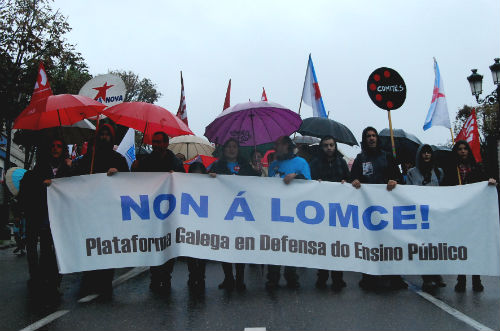 Máis de 5.000 personas-na sua maioría alumnos e profesores de diferentes centros- secundaron este xoves a chamada feita pola Plataforma Galega en Defensa do Ensino Público, e sairon en manifestación dende a Praza de España baixo o lema ‘Non á Lomce’, no que é o acto final da folga neste sector, e que, á mesma hora convocou a milleiros máis de estudantes, Mestres e país nas outras grandes cidades de Galicia.