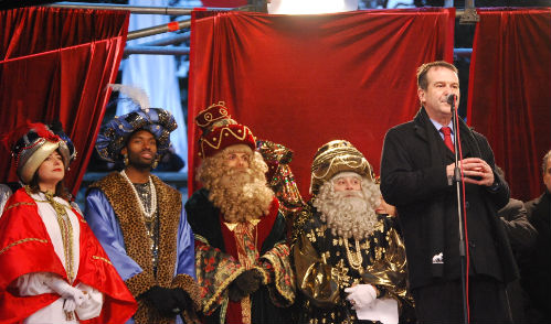 El Rey Melchor, que además es un excelente músico, habló en nombre de los tres, para agradecer el cariño de los niños, les dijo que ya tenía guardados todos los paquetes y reconoció que les encanta venir a Vigo “es una ciudad muy hermosa, sabemos que somos muy queridos y aquí siempre nos sentimos como en nuestra casa”. A su lado sonreían el Rey Gaspar, que esta mañana se dirigió a los vigueses por la radio, y el Rey Baltasar que, según la Cartera Real, cuando no tiene que atender los asuntos de su reino, dedica mucho tiempo a jugar al baloncesto, uno de sus deportes preferidos.