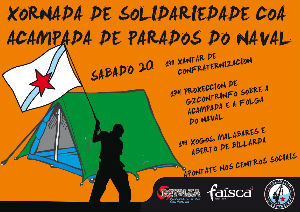 Esta xornada consistirá nunha comida de confraternización, ás dúas da tarde, na que os centros sociais se encargarán de facer este xantar colectivo e aportar a infraestrutura necesaria, e ao remate haberá sobremesa, foliada e algunha actuación sorpresa máis. Á tarde haberá xogos populares e malabares, ademais dun aberto de billarda, e para rematar, proxectaranse videos realizados polo colectivo audiovisual Gzcontrainfo sobre esta acampada e sobre a folga do naval do pasado 10 de marzo.