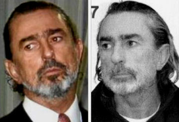 A la izquierda, Francisco Correa el día de la boda de la hija de Aznar, a la derecha, fotografía de su ficha policial