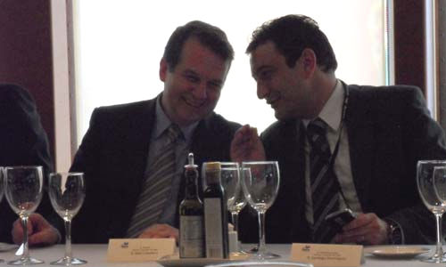 El alcalde y el teniente de alcalde durante la comida que se sirvió abordo del Grand Voyager/Tresyuno Comunicación