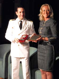 «Los cruceristas ya no tendrán que bajarse en medio de contenedores y coches», aseguró orgullosa la presidenta del Puerto, Corina Porro, que intercambió metopas con el capitán del barco, Antonio Toledo, una placa que se regala en cada viaje inaugural y que acompañará al puente de mando del’Grand Voyager’ también al Mediterráneo y a Brasil. De manera excepcional por lo que supone para Vigo también se le entregó una metopa al presidente de Iberocruceros, Mario Martini, y el gerente de Viajes Loa, Luis Otero, otro de los impulsores de Embárcate con Vigo.