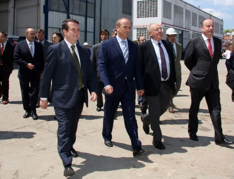 O ministro de Industria, Miguel Sebastián, acompañado polo delegado do Goberno o alcalde e o director da planta, visitou este martes a factoría viguesa de PSA Peugeot Citroën e asegurou que traballa «codo con codo» coa Xunta e co alcalde para traer a Vigo a factoría de baterías para coches eléctricos.