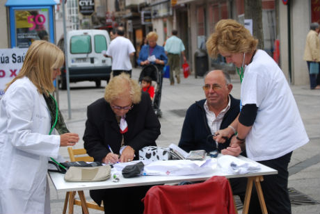 Sanidade Pública/Tresyuno ComunicaciónEnfermeras y médicos del Xeral protestaron hoy contra lo que aseguran será una privatización de la sanidad tomando la tensión y realizando pruebas de azúcar, de manera gratuita, delante del Mercado de O Calvario. La protesta, convocada por la Plataforma en Defensa da Sanidade Pública, alertaba sobre que “se haga negocio privado a costa de la salud de la ciudadanía”, algo que entienden es la intención de la conselleira de Sanidade, que hoy dará una conferencia en el Club Financiero de Vigo, al plantear la cesión de parte de los servicios del nuevo hospital a empresas no sanitarias.