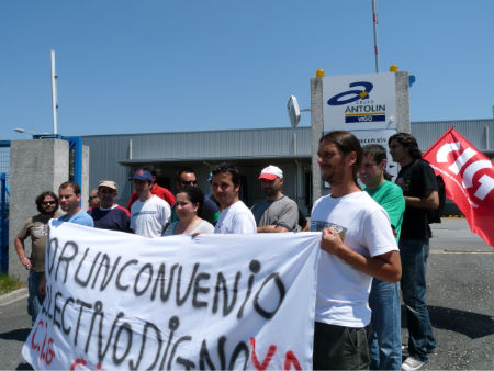 Os empregados de Grupo Antolín de Vigo iniciaron este luns unha serie de concentracións diante das instalacións da compañía no polígono tecnolóxico e loxístico de Valadares para protestar polo bloqueo nas negociacións do convenio colectivo. Os representantes da CIG no comité de empresa denuncian que a nova proposta da patronal supón unha volta atrás nos acordos acadados no mes de maio.