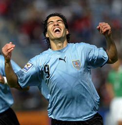 El empate en títulos mundiales entre Europa y América podría decidirse a favor de los americanos…al menos ese es el camino por el que camina Sudáfrica 2010. El último paso lo ha dado la selección uruguaya que hoy se ha convertido el el primer equipo en clasificarse para los cuartos de final del Mundial de Sudáfrica tras vencer (2-1) a Corea del Sur gracias a un excepcional Luis Suárez que, además de dos golazos, metió a su país en unos cuertos de final del Campeonato de Mundo por primera vez desde 1966.