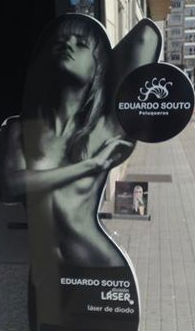 Eduardo Souto, el dueño de una peluquería lucense del mismo nombre tiene en la puerta como reclamo publicitario esta foto no podía imaginarse, ¿o tal vez si?, que la misma fuese a causar una polémica entre la secretaria xeral de Igualdade, Marta González, y la directora del Instituto de la Mujer del Ministerio de Igualdad, Laura Seara.