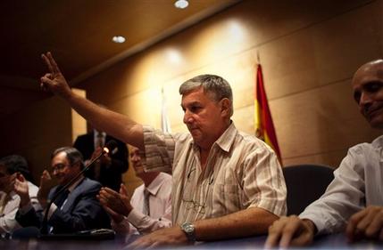 Presos políticos CubanosPablo Pacheco Avila, Omar Ruiz Hernández, Antonio Vilarreal Acosta, Julio César Gálvez, José Luis García Paneque, Ricardo González Alfonso y Lester González Pentón, hasta ahora presos políticos en Cuba, han llegado hoy a Madrid. En una rueda de prensa en Barajas han agradecido su liberación al “martirologio” de Orlando Zapata, a los 135 días en huelga de hambre y sed de Guillermo Fariñas y a la lucha de las ’Damas de blanco’ y de los miles de exiliados cubanos.