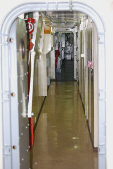 Abordo, guiados por el segundo y un miembro del equipo de comunicaciones de la Armada, descubrimos la cubierta de popa, con un helipuerto para helicópteros de la clase ‘SH-60’, un completo hospital, camarotes dotados con cuarto de baño, preparados para los oficiales, cada dos comparten uno de ellos, suboficiales, 4 en cada uno y marinería que se distribuye en habitáculos de 8 y 12 literas; cuatro 4 ‘trozos’ de emergencia y reparación, equiparables a pequeños parques de bomberos en alerta 24 horas al día en turnos de 3 horas,e integrados por una dotación de 15 hombres (1 oficial, 2 suboficiales y 12 marineros) que se encatgan de comprobar el buen fucnionamiento del barco, de labores de apoyo y asistencia en atraques y desamarres o de asistir en los vuelos y despegue de los helicópteros.