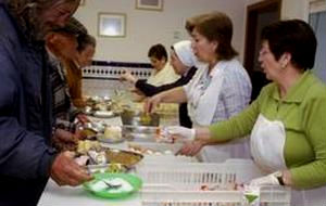 comedor socialLangostinos, sopa de polo con pasta, estofado de terneira con verduras e froita. En eso consistirá o menú que se servirá en nove centros sociales de toda a comunidade, hoxe, coincidindo co Día de Galicia. A iniciativa, posta en marcha por Velgasa-Eroski, que cada mes fai chegar máis de 10.000 kilos de alimentos ás despensas de numerosos comedores sociais galegos, conta coa la colaboración da ‘Cocina Económica’ de A Coruña, Santiago e Ferrol, ‘Sal de la Tierra’, de Vigo, ‘Betania’, de Viveiro (Lugo), Asilo de Nuestra Señora de los Ángeles, en Ribadavia (Ourense), ‘Renacer’, en A Coruña e ‘Cotolengo’ en Compostela.