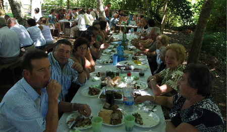 Este é o escenario da comida organizada pola Asociación de Afectados pola Plisan, nunha carballería de Freixindo, na Comunidade de Montes de Meder, en Salvaterra…imposible atopar un lugar mellor e que combinase coa empanada, xamón, churrasco, carne de terneira, criollos, polo asado, bebida, postre, café, copa e seica puro, aínda que o padriño non daría feito con tanta celebración. Eso sí, como anunciaban en Facebook, ao final o asador non foi o concelleiro de Obras de Salvaterra, nen foi de camarera a deputada Marta Valcarcel, se cadra estaban na festa popular montada preto de Pontevedra, privando aos asistentes da experiencia acadada a semán pasada na churrascada de Fiolledo.