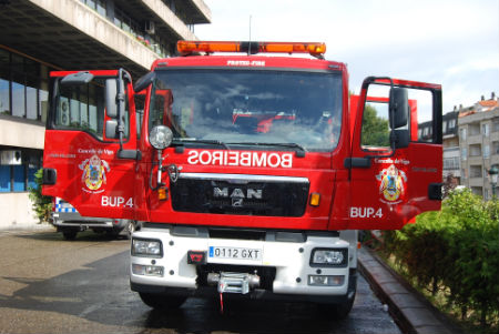 Camión de Bomberos/Tresyuno ComunicaciónAunque ya han intervenido en el incendio de Pinturas Proa y en la retirada de placas arrancadas por el viento en la Plaza Elíptica, el alcalde presentó hoy dos nuevos camiones de bomberos en los que el Concello ha invertido, con cargo a los presupuestos del año pasado, 550.000 €. Son una bomba urbana pesada, con capacidad para 5.000 litros de agua y una segunda, ligera, con un depósito de 1.000 litros y 100 de espumaque se adhiere a la superficie y permite actuar con máxima rapidez en la extinción de las llamas”.