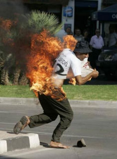Llegó andando tranquilamente hasta los juzgados, situados en el Prado de San Sebastián, pasadas las 11 menos cuarto de esta mañana, encendió un cigarrillo, sacó una botella con un líquido, se la echó por encima y se prendió fuego. No se saben aún los motivos que han movido a un chico de 23 años a quemarse de esta manera, sí se ha conocido que las quemaduras que se ha causado afectan al 80% de su cuerpo y que está siendo tratado de elas en el Hospital Virgen del Rocío.