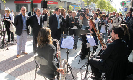 Se hai uns días o proganista da inauguración de Simón Bolívar foi un pianista, hoxe a ‘Sinfonía das humanizacións’ correu a cargo dun carteto de vento. Coas súas notas de fondo, o alcalde inaugurou hoxe as rúas Regueiro e Tarragona, onde asegurou que «humanizamos máis de tres quilómetros de rúas no entorno de Povisa».