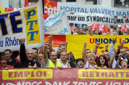 HuelgaLa quinta jornada de movilizaciones en Francia ha demostrado el poder que tienen los sindicatos en aquel país. Las centrales, pese a lo reiterado de las protestas, han sido capaces de mantener una movilización durante la cual decenas de miles de trabajadores salieron a la calle para protestar contra la reforma de las pensiones en la que se ha empeñado el Gobierno Sarkozy.