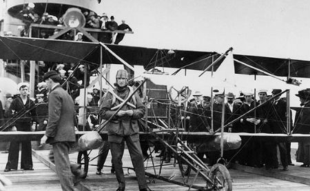 Pilotaba un Curtiss y el aterrizaje, como se explica en el blog Tecnología Obsoleta, fue sobre la cubierta del crucero USS Pennsylvania, anclado en la Bahía de San Francisco.