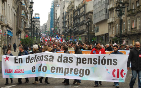 La mayor movilización se produjo al mediodía en la manifestación central, que discurrió en Vigo y a la que acudieron alrededor de 8.000 personas. Los asistentes gritaron en contra de la política del Gobierno mientras que la megafonía denunciaba que el recorte de las pensiones aprobado por el ejecutivo de Zapatero era el mayor ataque contra los derecho sociales de los últimos 40 años.