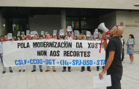 Os traballadores denuncian que, mentras o Ministerio de Xustiza nomeou dous maxistrados máis na Sección Sexta da Audiencia, con sede en Vigo, «a Xunta suprimiu os dous reforzos para esos dos novos xuices”. Os concentrados tamén acusaron ao goberno galego de facer unha política de xestos e de actuar con cinismo xa que o mércores, cando se anunciaron as movilizacións, nomeou a máis interinos que entre xuño e agosto.