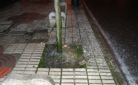 La tubería, que está en la base de uno de los árboles, ha levantado parte de la acera y ha hecho que el tramo de calle tenga la imagen de un día de fuertes lluvias. La inundación llega hasta el inicio de la salida del túnel que viene desde la Avenida de Castelao y ha anegado la totalidad de la calzada, donde los vehículos que circulan, en especial los autobuses de Vitrasa, que tienen una parada justo al lado de la avería, deban reducir la velocidad, tal y como se aprecia en las fotografías, tomada alrededor de las 8 y cuarto.
