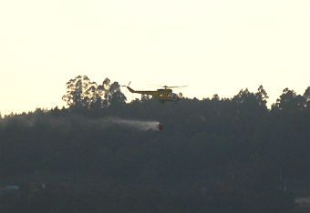 El fuego de Manzaneda empezó cerca de la 1 de la tarde de este sábado en el concello de Cesuris y en los trabajos de extinción participaban, según los últimos datos difundidos por la consellería, un técnico, seis agentes forestales, 20 brigadas, seis motobombas, tres palas, nueve helicópteros y ocho aviones.