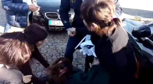 Logo, os axentes empurraron e arrastraron fora do lugar a outra concelleira nacionalista en Salvaterra, Patricia Mariño, que tivo que ser atendida en Urxencias dunha contusión cervical.