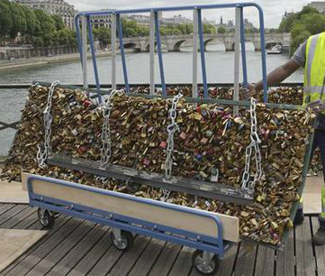 El consistorio de capital francesa intentó, sin éxito alguno, convencer a los visitantes de que abandonasen la práctica de simbolizar su amor colgando un candado del puente y lanzando la llave al agua.