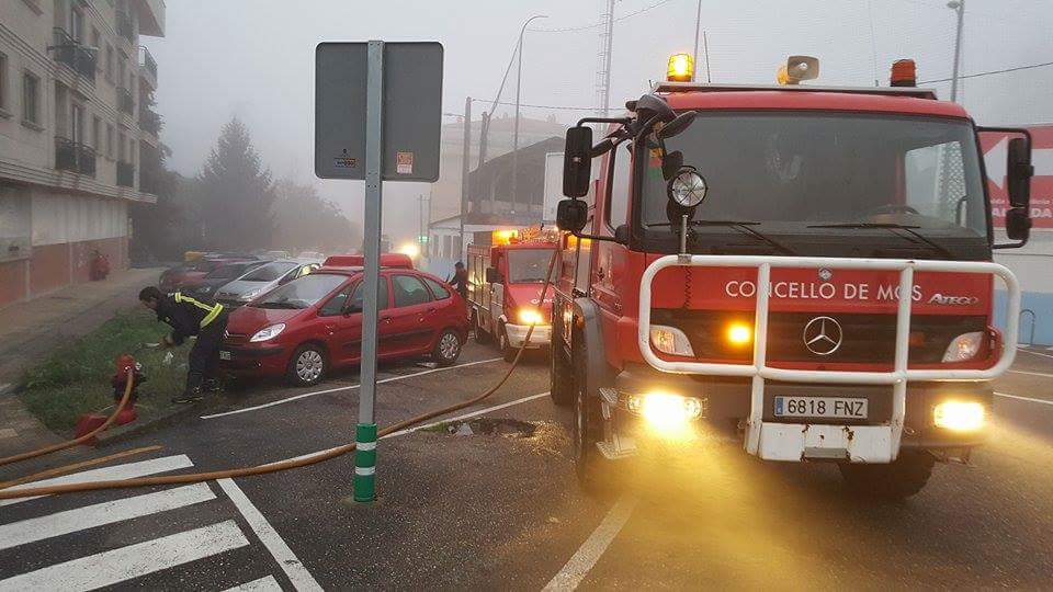 El incendio se declaró pasadas las 5:30 horas de la madrugada, hasta el lugar se desplazaron en un primer momento los Bomberos del Consorcio de Porriño y más tarde los Bomberos de Ponteareas, el Servicio municipal de emergencias del Concello de Mos y Protección Civil de Mos.