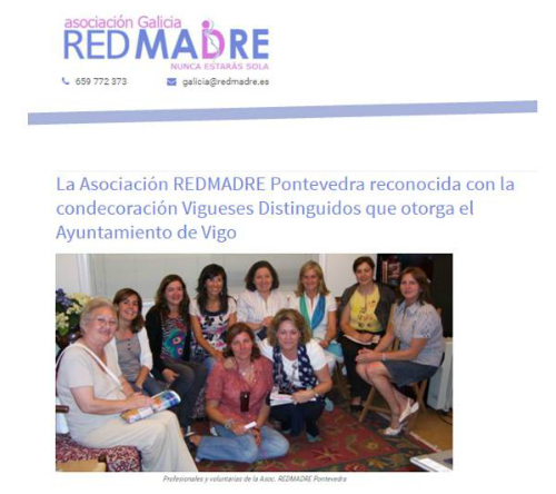 RED MADRE daba por hecho que había sido galardonada como ‘Vigués Distinguido’, según publicó en su portal web. En una información encabezada por el titular «La Asociación REDMADRE Pontevedra reconocida con la condecoración Vigueses Distinguidos que otorga el Ayuntamiento de Vigo», que aún permanece en dicho portal, dice, «la asociación de iniciativa social REDMADRE Pontevedra, es de ámbito provincial, y tiene carácter aconfesional y apolítico. Es una entidad solidaria que nació en enero de 2008 con el fin de proporcionar apoyo psicosocial a mujeres embarazadas y madres recientes en situaciones de vulnerabilidad (pérdida de empleo o estudios, abandono de la pareja y familia, falta de recursos económicos, discapacidad,…)», unos términos muy parecidos a los enviados por el Grupo Municipal del Partido Popular de Vigo en un comunicado a la prensa.