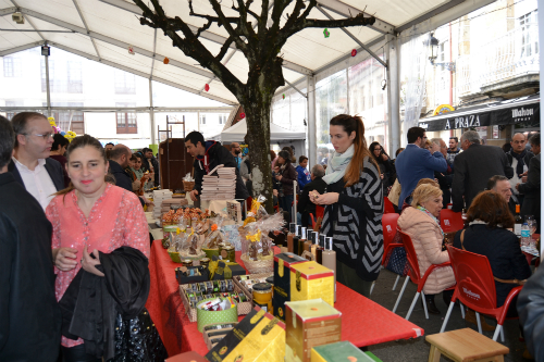 La carpa ubicada en la plaza Maior de la villa, en un espacio más grande y de mejor acceso, acogió puestos de productos ecológicos, artesanos, gastronomía y típicos vinos y licores de la zona.