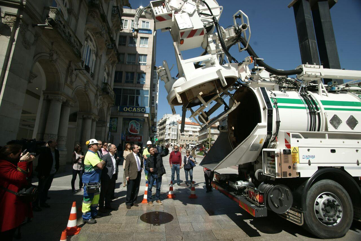 Un nuevo equipo de limpieza «hecho a medida» para Vigo y dotado de las últimas novedades tecnológicas. Así es el nuevo camión presentado por el Concello de Vigo y Aqualia para la limpieza de alcantarillas, con el que se pretende conseguir una reducción del consumo de agua y la mejora del rendimiento y la eficiencia energética.