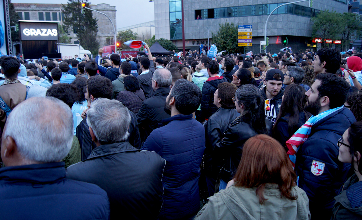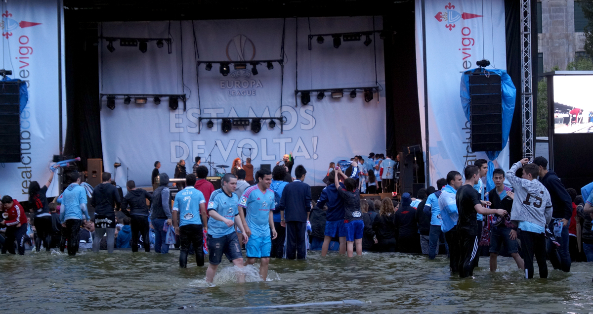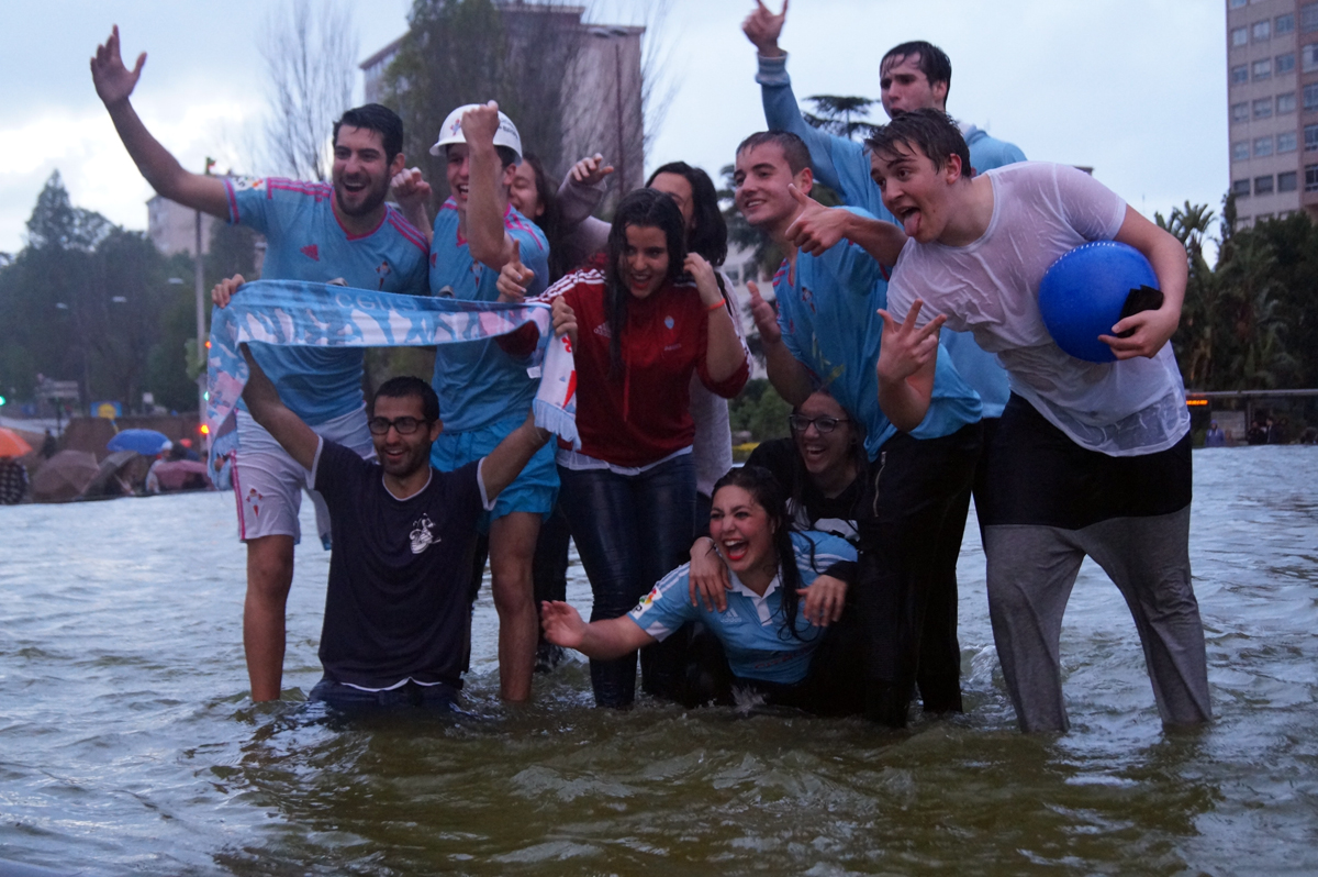 Los aficionados tenían ganas de fiesta, de volver a As Travesas y mojarse en su fuente para celebrar las conquistas de su equipo. Esta vez, Europa. Miles de vigueses se congregaron en la Praza de América tras el último partido del Celta en casa esta temporada (la última jornada la disputará en el Vicente Calderón ante el Atlético de Madrid) para celebrar que el equipo ha encontrado de nuevo su hueco en Europa.