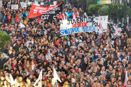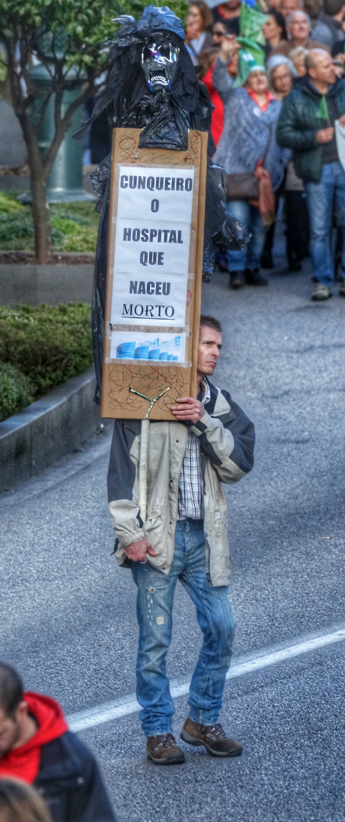 La manifestación, mucho menos numerosa que la de septiembre pasado, en la que se manifestaron más de 100.000 personas llegadas de toda el Área Sanitaria de Vigo, salió de la Praza de España con los asistentes denunciando el recorte en el número de camas que sufre el área sanitaria con el nuevo hospital, la falta de personal, la “insostenible lista de espera” o la infrautilización de las instalaciones del Hospital Meixoeiro.
