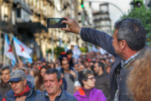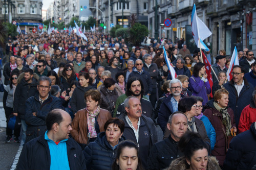 Entre los participantes en la multitudinaria marcha estaba el alcalde de Vigo, Abel Caballero, la presidenta de la Diputación, Carmela Silva, el veterano líder nacionalista Xosé Manuel Beiras, la alcaldesa de Moaña, Leticia Santos, el regidor de Cangas, Xosé Manuel Pazos, el de As Neves, Xosé Rodríguez, la dirigente de Podemos Carolina Bescansa o la diputada de AGE, Eva Solla.