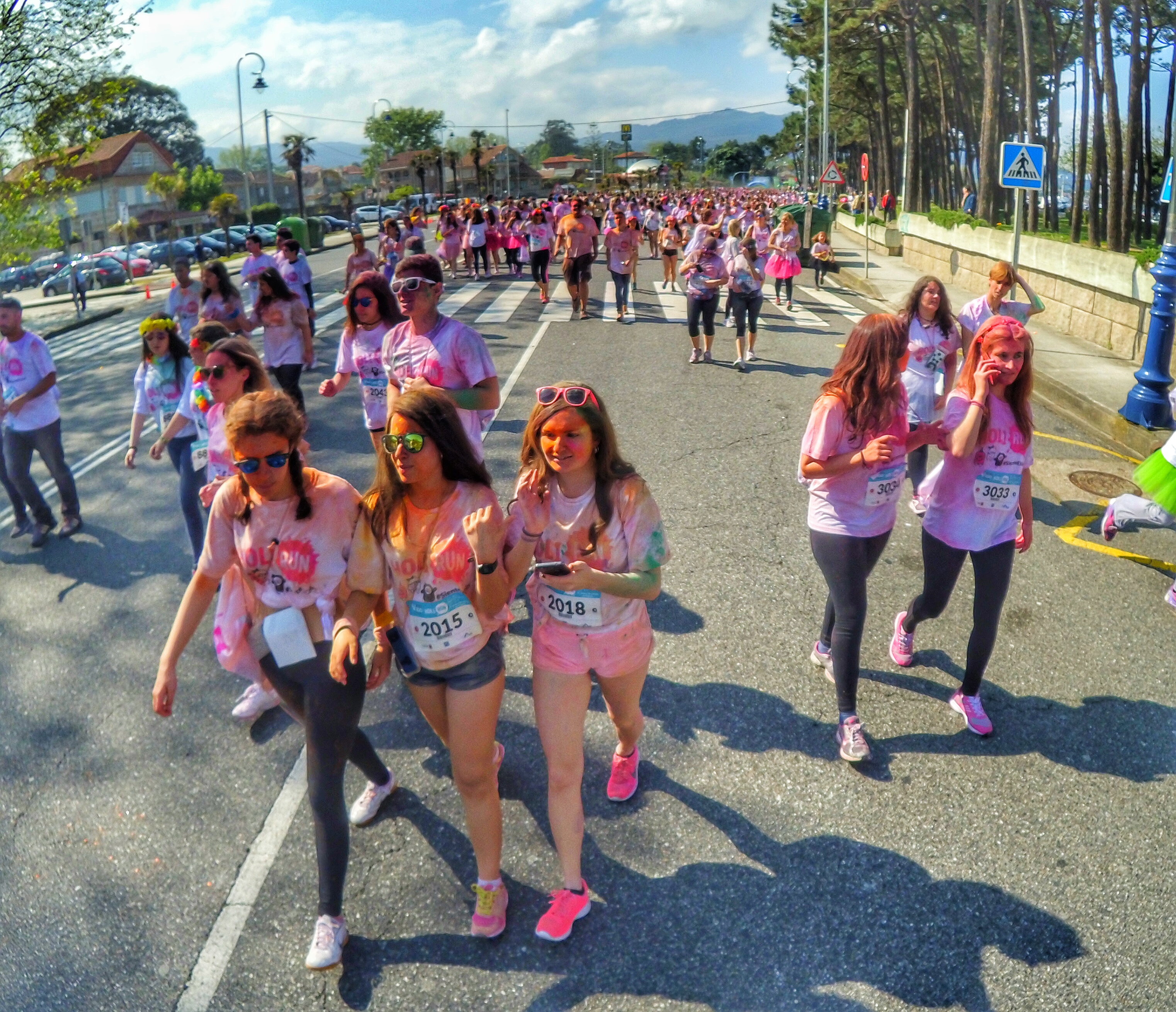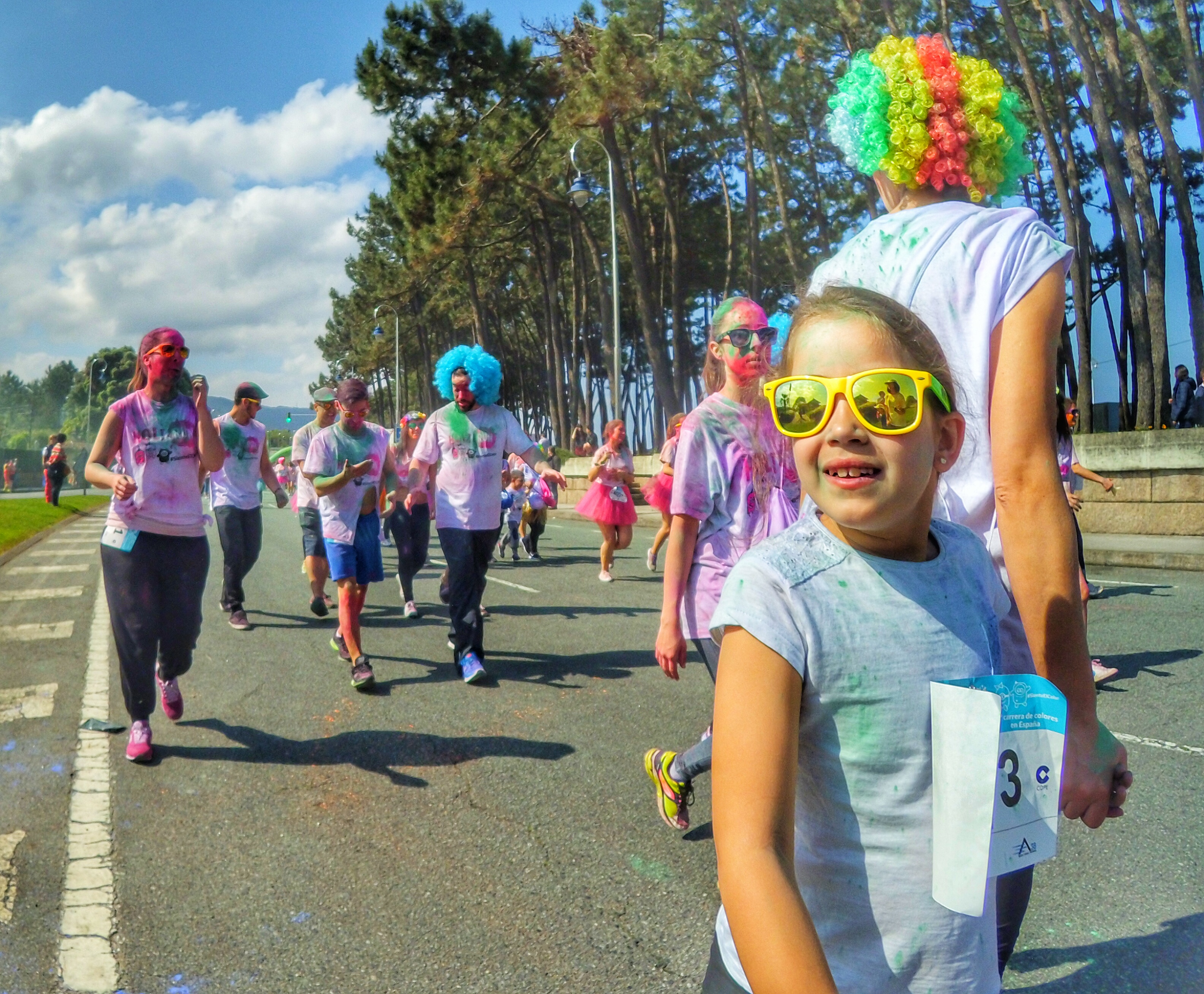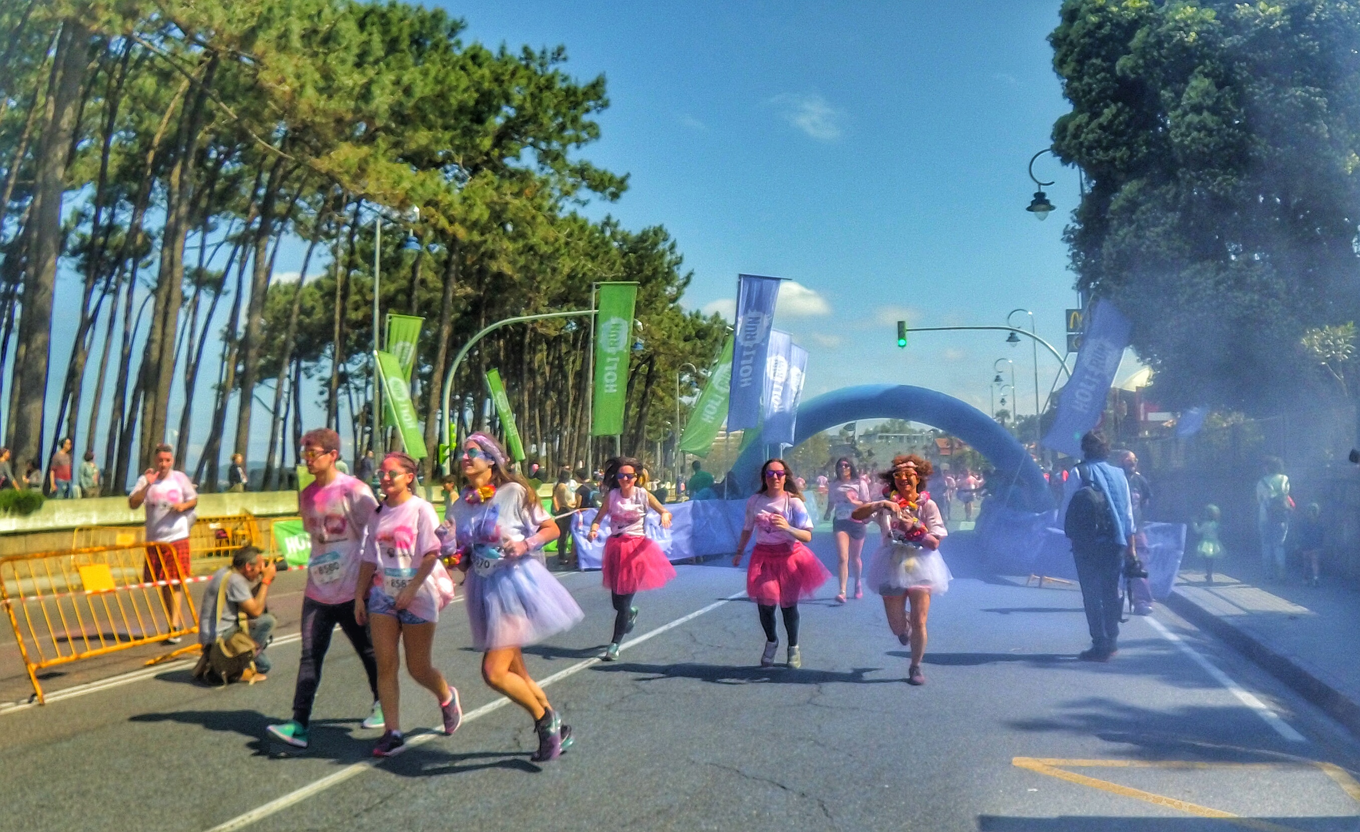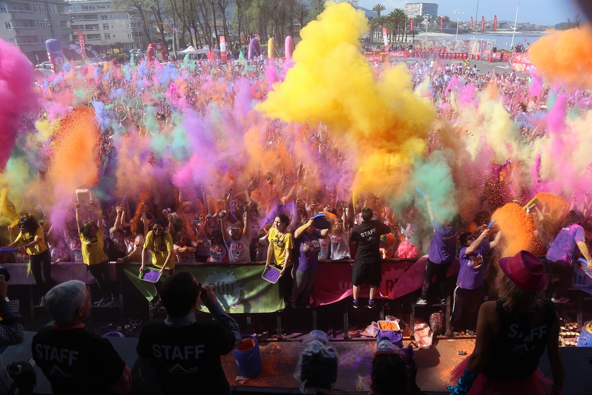 Sol, música y mucho, mucho color. Cerca de 9.000 personas inundaron Samil para participar en la Gira Holi Run 2016, una experiencia lúdicodeportiva en la que se han inscrito corredores de Galicia, País Vasco o Madrid.