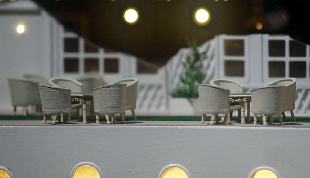 Se trata de una maqueta de 12 metros de eslora y unos 600 kilos que recrea hasta el más mínimo detalle, desde la sala de calderas o los salones hasta los camarote o la famosa escalinata central. El barco tiene uno de los laterales abiertos para disfrutar de todos estos detalles y ver la distribución que tenía.