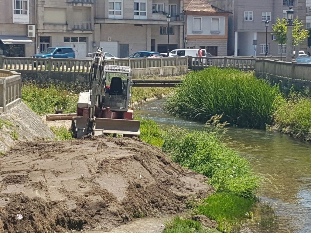 Los trabajos, en los cuales se invertirán alrededor de 34.000 € y que son los últimos de los que se han acometido para subsanar los daños de la riada, se realizan estos días teniendo en cuenta el buen tiempo y el hecho de que el Maceiras discurre con menos caudal, lo que facilita que pueda disponerse de maquinaria en la orilla.