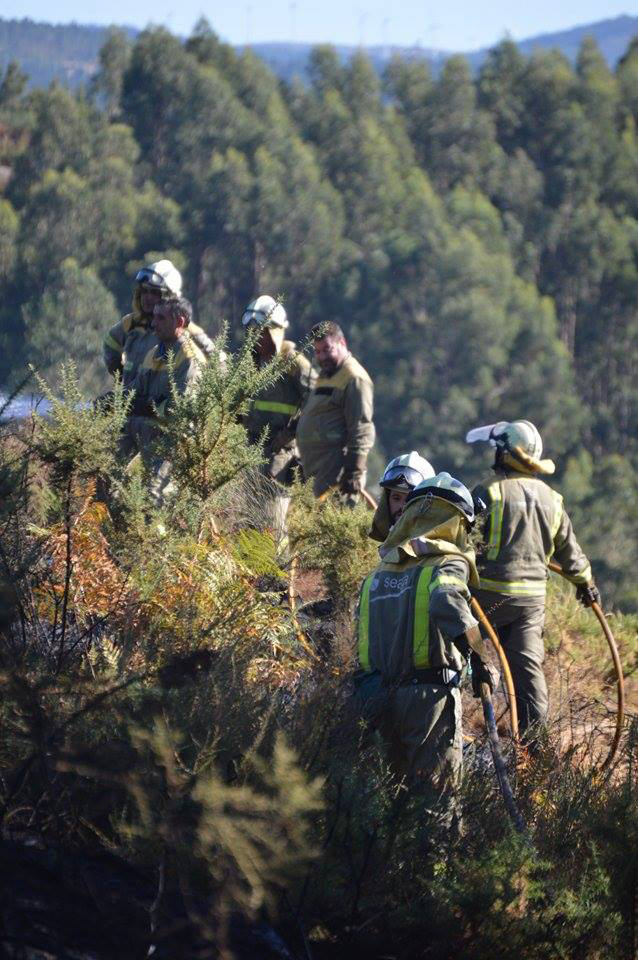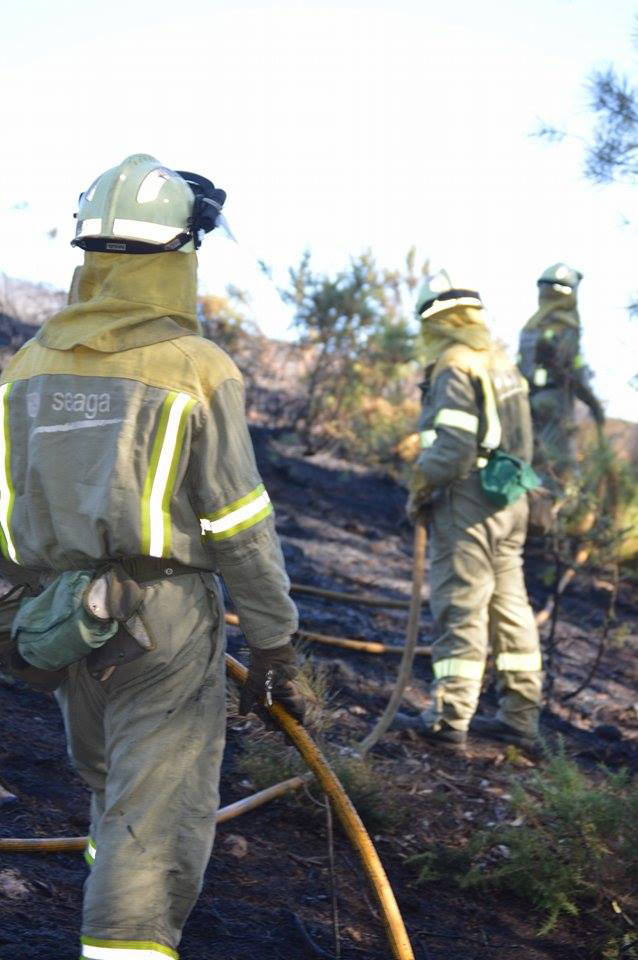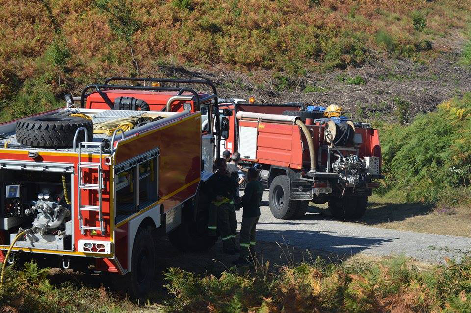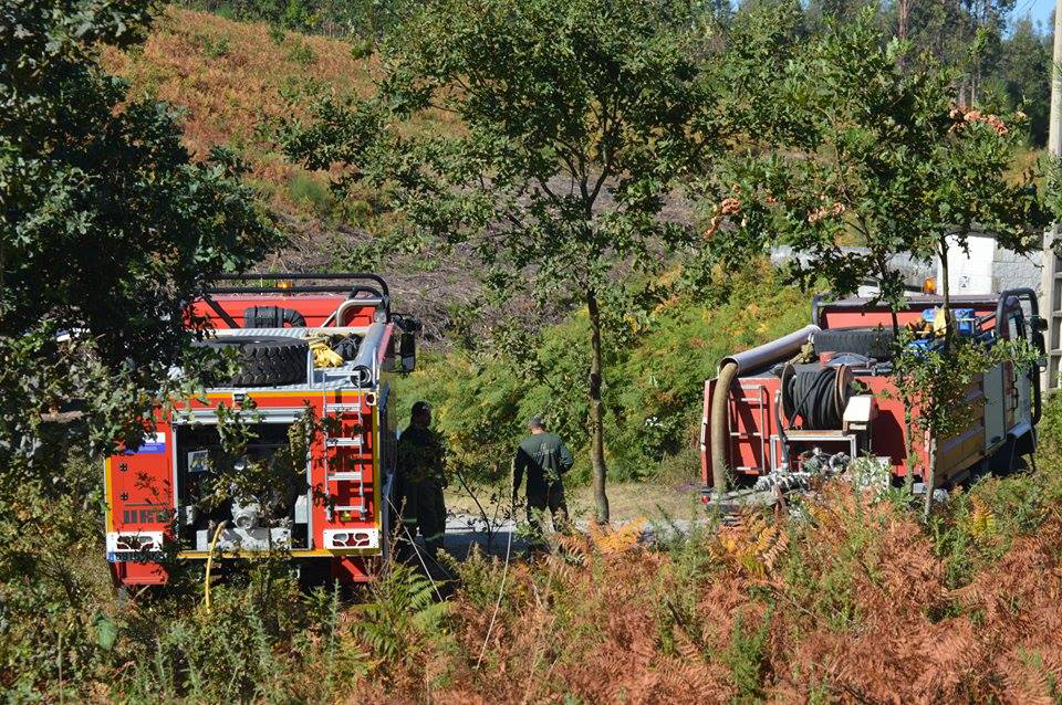 En las labores de extinción participaron un agente, dos brigadas, dos motobombas y un helicóptero aerotransportable de Queimadelos.