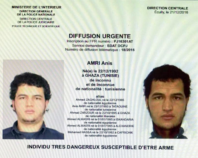 Según la televisión pública alemana WDR, los agentes han registrado al menos dos viviendas y los detenidos estarían relacionados con Amri Anis, el tunecido de 24 años buscado como sospechoso del atentado y por el que el Gobierno ofrece una recompensa de 100.000 euros a todo el que aporte información que ayude a capturarlo. Ha advertido que probablemente va armado y es peligroso.