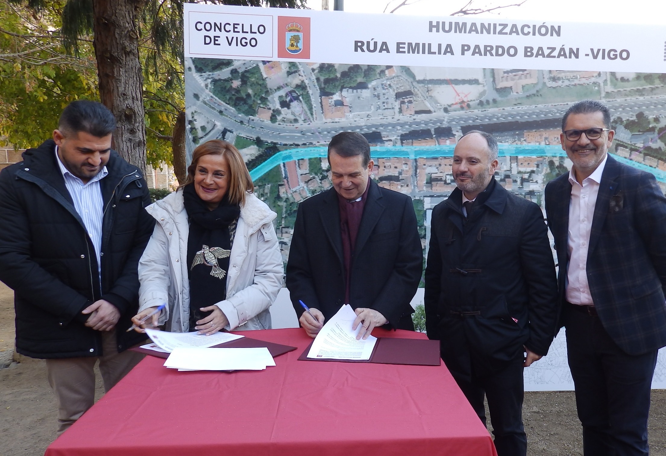 El alcalde de Vigo, Abel Caballero, y la presidenta de la Diputación de Pontevedra, Carmela Silva, firmaron este viernes el convenio por el que la institucion provincial cede al concello la calle Emilia Pardo Bazán, que será humanizada con un presupuesto de 3 millones de euros.