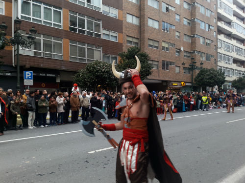 Junto a ellos decenas de miles de personas en las aceras de García Barbón, Policarpo Sanz y la Porta do Sol, con disfraces de todo tipo, desde agente secreto…o no tanto, hasta algo que parece que nunca será Urdangarín: preso, esperaban a las comparsas que han arrancado del Nudo de Isaac Peral con algo de retraso.