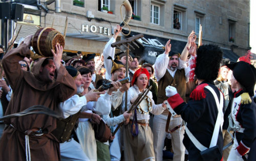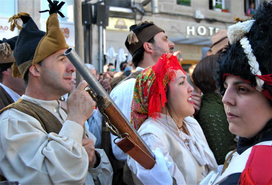 Miles de personas pasearon por el barrio histórico de la ciudad para rememorar la Reconquista de Vigo a manos de los franceses, ese 28 de marzo de 1809 en el que el pueblo se levantó en armas contra las tropas napoleónicas. Las mujeres echaron abajo la puerta de Gamboa y obligaron a los galos a escapar por a Laxe.