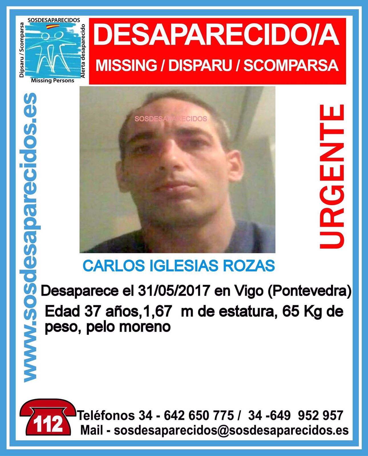 Buscan a Carlos Iglesias , se trata de un hombre de 37 años, que  ha desaparecido según informan, de su domicilio en la zona de Pizarro, el pasado miércoles 31 de mayo sobre las 17.00 horas.