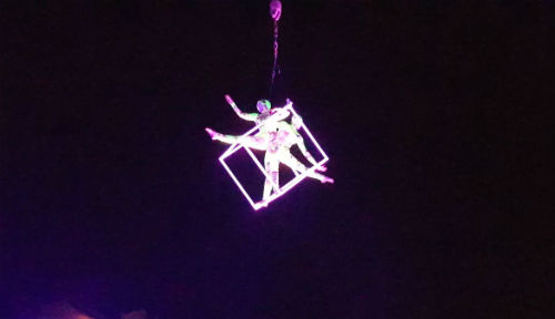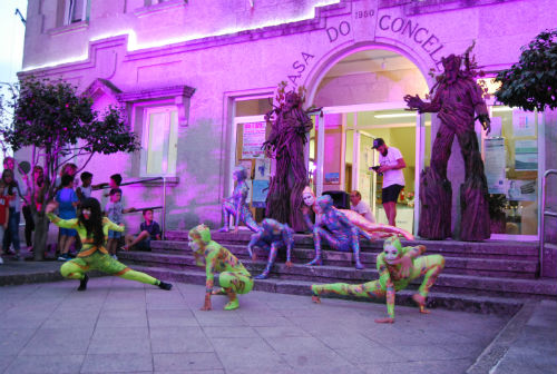 Homes videiras, burbullas de cores, flores penduradas no aire, un inmenso cubo voador, ritmo, son, xigantes de luz e unha burbulla que sobrevoa ao público, foron algunhas das imaxes que cortaron o ceo de As Neves onte pola noite e que remataron con todos os asistentes postos en pe agradecendo o feito de ter estado alí.