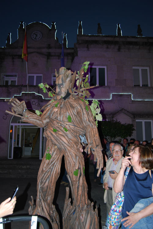 O artista de Rubiós, que voltou As Neves para presentar este ‘pregón’visual da Festa do Tinto, propuxo un mundo de fantasía, como salientou o alcalde, Xosé Manuel Rodríguez, no que o protagonismo foi para a imaxe, o mundo do viño, e a música, que correu a cargo da Banda de Música Popular de Rubiós.