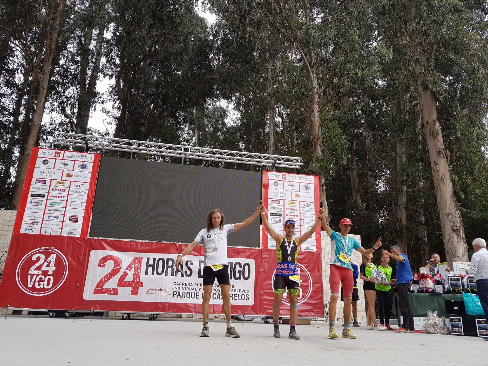 Imágenes:vigoalminuto.com/Antonio Teijido-con 208 vueltas- en categoría masculina, y Begoña Doniz, en femenina, has sido los ganadores de la IV edición de la Carrera 24 Hora de Vigo. El podio lo han completado Fernando Ibarra y Enrique Inglés y Marisol Gómez y Silvia Rodríguez, quienes se llevaron, en sus respectivas pruebas, las medallas de plata y bronce.