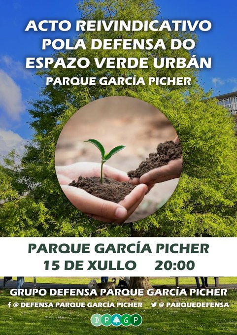 El grupo ‘Defensa Parque García Picher’ nace con el objetivo de proteger el Espacio Verde Urbano existente en el parque situado en la zona de Jacinto Benavente y la rúa Coruña, tras el anuncio del Concello de Vigo de la construcción de un macroparque infantil de caucho.