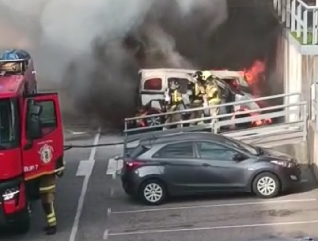 Imágenes: S.E./ Bomberos de Vigo han acudido de urgencia, este martes por la tarde, al Centro Comecial Meixoeiro donde, por causas que aún no han trascendido, ha explosionado una furgoneta.